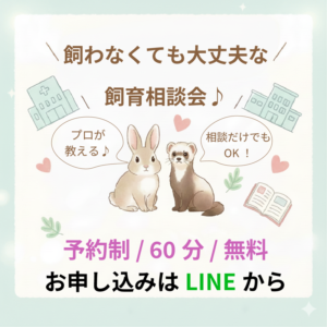 はい。フェレットは人懐っこく、犬や猫のように室内で一緒に暮らせるパートナーです。飼育環境の整え方や注意点のご案内はもちろん、お迎え後もLINE・電話・メールでサポートします。
