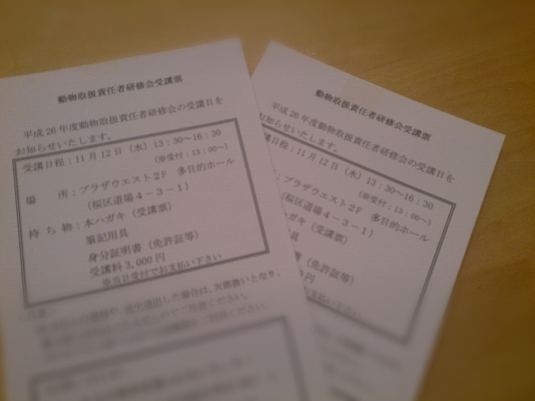 動物取扱責任者研修会を受講してきます。