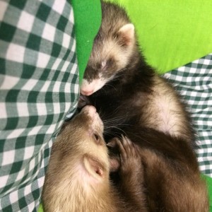 春眠暁を覚えずといいますが、フェレットちゃんたちにはには関係ない様ですね。 寝起きでもお目目ぱっちりブラックセーブルの女の子ヾ(@~▽~@)ノ ...