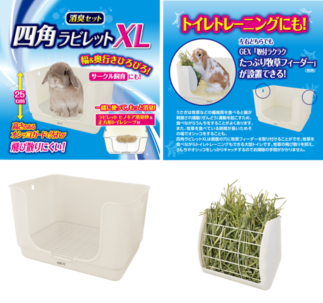 ■四角ラビレットXL消臭セット ミルキーホワイト&取付ラクラクたっぷり牧草フィーダー Coming Soon