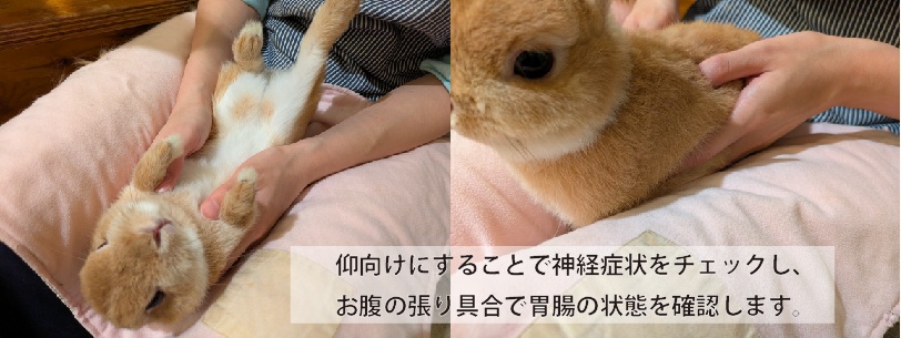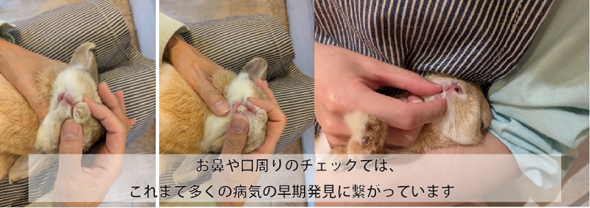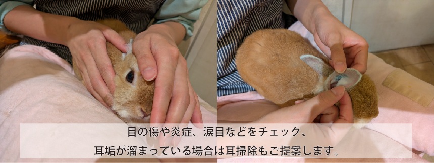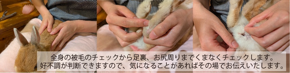 ブラッシングの前に、すべてのうさぎさんの健康状態を目視にてチェックさせて頂いております。