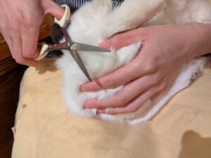 当店で行ううさぎの爪切りは、後ろ足は爪切り後にやすりなどでカットした面を滑らかにしています。