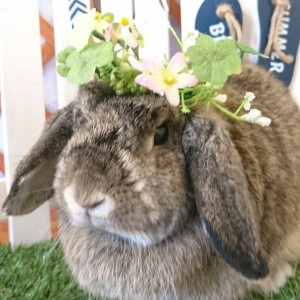 おととい作った花冠ですが、前回のモデルが垂れ耳さんだったので、立ち耳さんにもモデルになってもらいました。