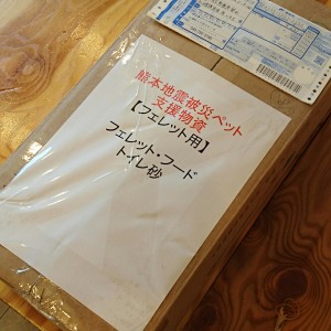 熊本を中心とする今回の大規模な地震で、亡くなられた方々にお悔やみ申し上げますとともに、被災された方々に心よりお見舞い申し上げます。 私どもは、情報が錯綜する中、何かしらご支援させていただけることがないか模索しておりました。 そんな折、普段からフェレットの保護活動をされている「フェレット保護団体花いたち」様より、熊本市の「たかた動物病院」様がフェレット用の支援物資を受け入れて、来院される...