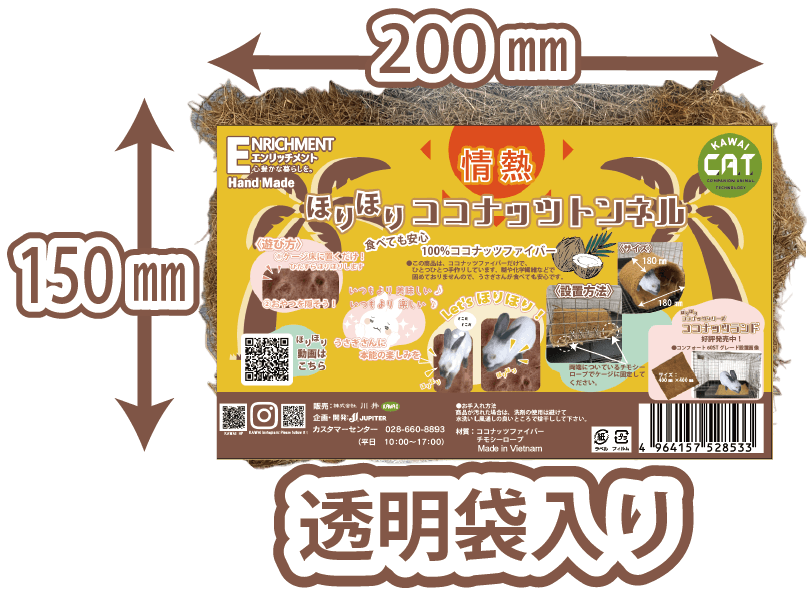 もちろん食べてしまってもココナッツファイバー100%使用なので食べてしまっても安心です。
